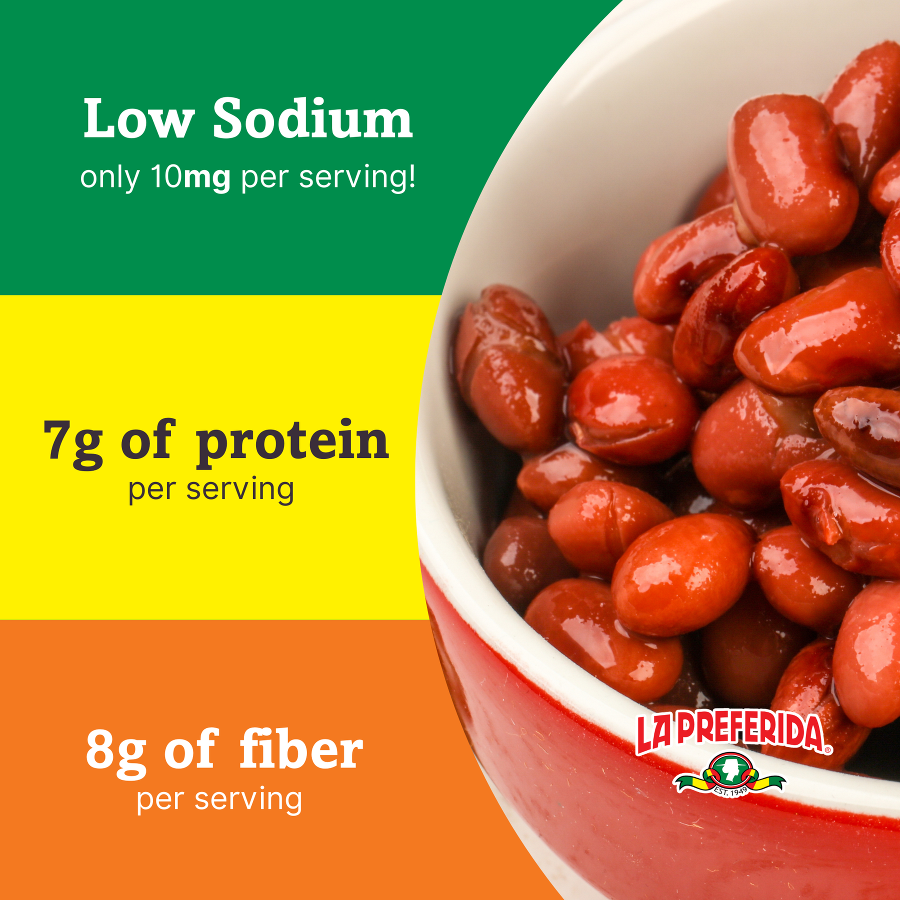 Meet your new pantry staple: La Preferida Low Sodium Kidney Beans. These tender, protein-rich light red kidney beans deliver all the hearty flavor you love — now with just 10mg of sodium per serving. Whether you're making chili, salads, soups, or meal-prep bowls, these low sodium red beans are the easiest way to keep meals wholesome without sacrificing taste.