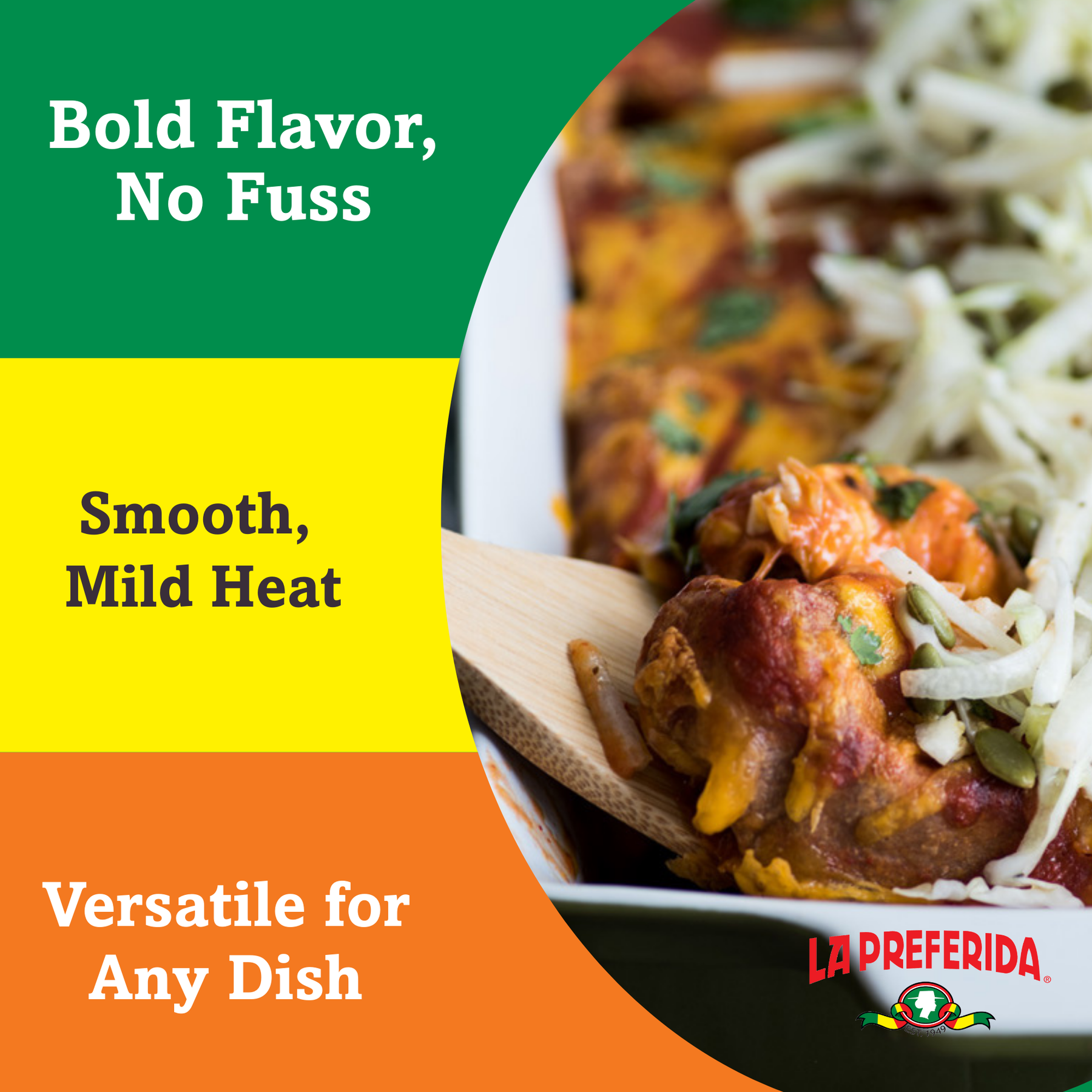 This mild red enchilada sauce is crafted for flavor first — not heat.