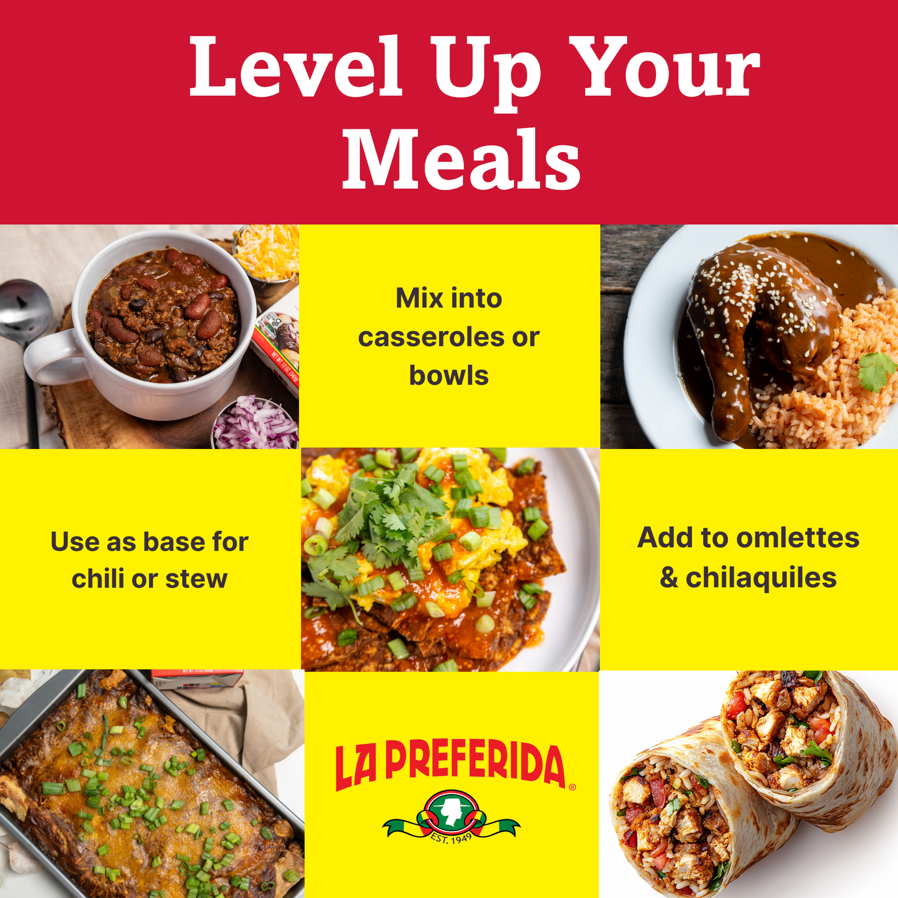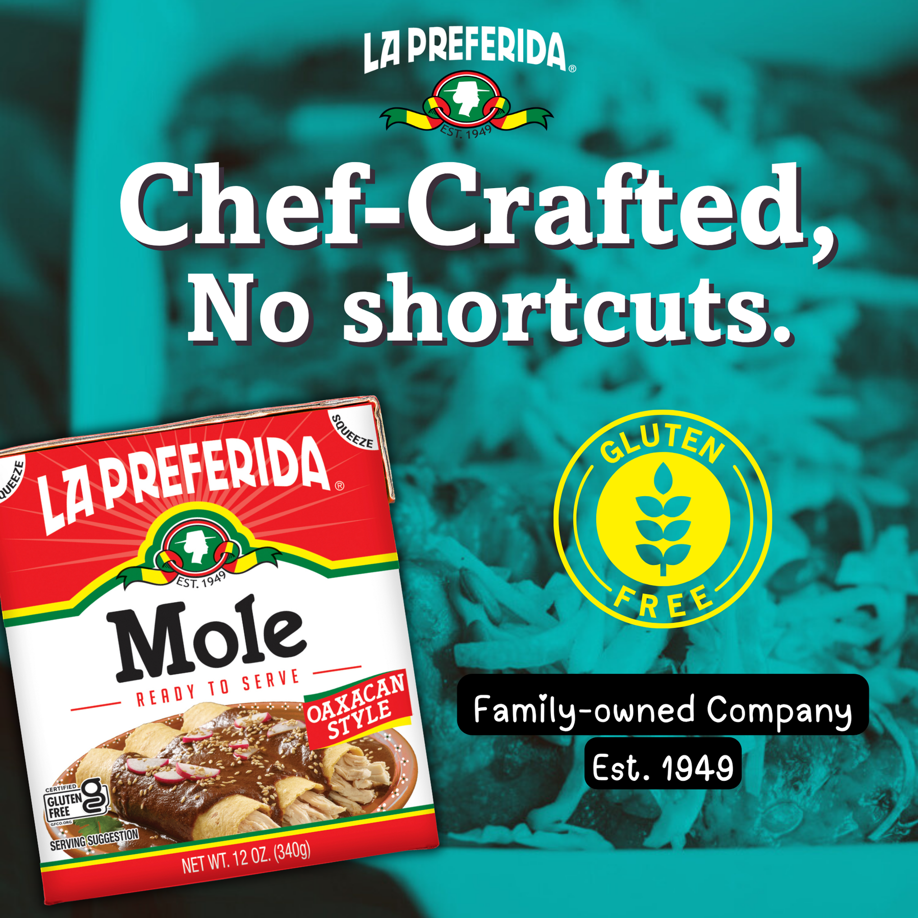 Since 1949, we’ve been perfecting authentic Mexican flavors with quality ingredients you can trust. Our chef-crafted mole brings a fresh take on tradition — made with roasted sesame, dark cocoa, and a signature blend of chiles for rich, balanced flavor.